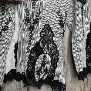 Alberto Makali Linen Top Embroidered Lace Size 4
