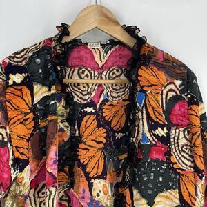 Alberto Makali Shirt Size Large Crinkle Cardigan Ruffle Top Blouse Sequins Artsy