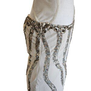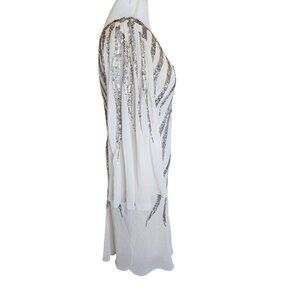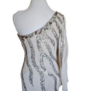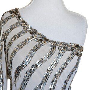Alberto Makali Size 12 Cream One Shoulder Cocktail Dress Sequins Metallic NWT