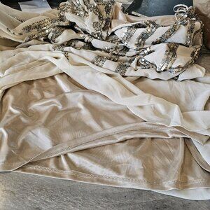 Alberto Makali Size 12 Cream One Shoulder Cocktail Dress Sequins Beige NWT
