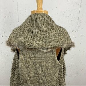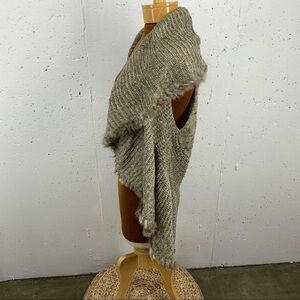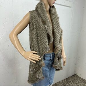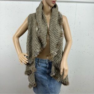 Alberto Makali Size Medium Alpaca Wool Knit Blend Rabbit Fur Trim Vest Cardigan