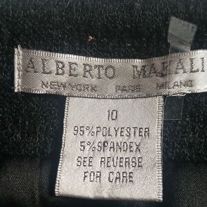 An Alberto Makali Skirt with a hexagon pattern in front and solid black in back with contour seams.