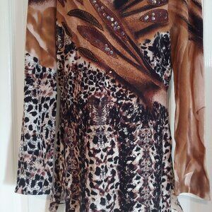 Alberto Makali Soft L-Sleeve Animal Print Over the Hip V-Neck Sweater M