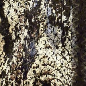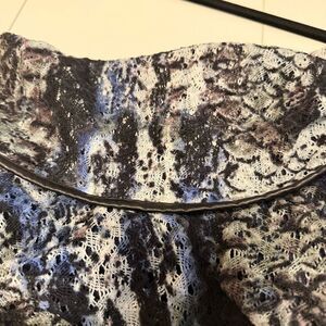 Iconic Alberto Makali with a moody, edgy, almost grunge aesthetic on front. Pretty, cobalt blue on arms and back. In like new condition.