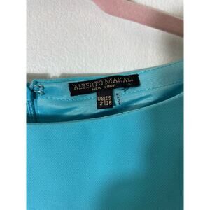 Alberto Makali Teal Knee Length Dress With Sequined Slit Sleeves Sz 2 . Has 90% polyester, boatneck, zippered back, good condition