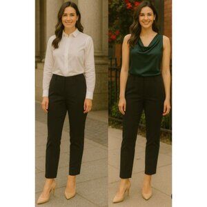 Alberto Makali Womens Black Textured Checkered Pants Size 8 Silk Blend Slim Fit