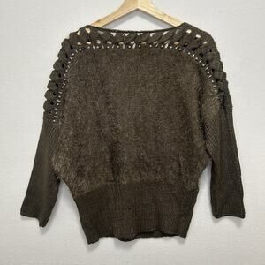 Alberto Makali Womens Large Fuzzy Sweater Brown Studded Fall Festive Cozy