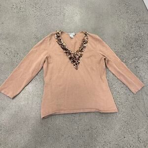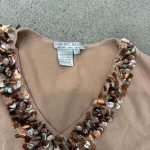 Alberto Makali Women's Large Sweater Blush Silk Blend Kit V-Neck Sequins Shells