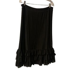 Alberto Makali Women's Ruffled Midi Skirt Size 12 NEW Black Tiered Romantic