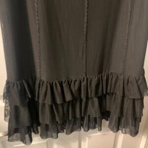 It's a lightweight, black midi skirt, with tiered ruffles at the hem.