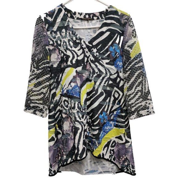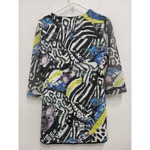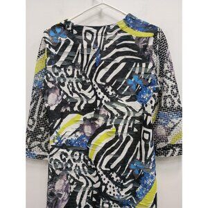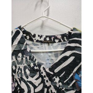 Alberto Makali Womens Wearable Art Top Medium Multi Abstract Textured 3/4 Sleeve