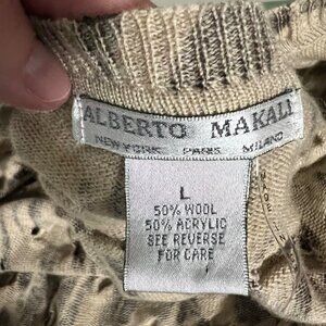 Alberto Makali Wool Blend Leopard Print Open Front Cardigan Sweater L