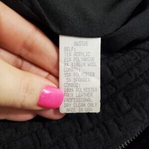 This sleek bomber jacket is so well made and feels luxurious while wearing. Has a great weight to it and the virgin wool provides extra warmth. The textured faux leather trim adds subtle elegance. Very upscale designer look and feel.