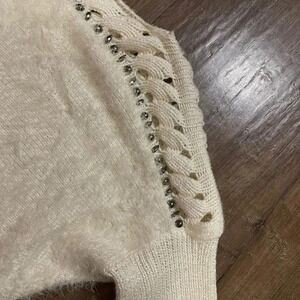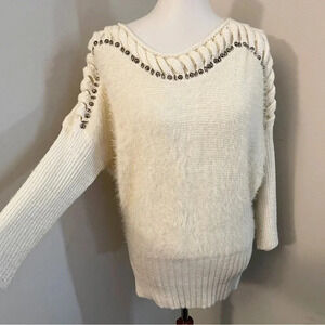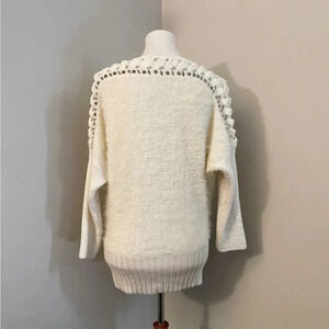 Ivory cream fur dolman sleeve sweater. Measurements are a 38-40 inch bust and 25 inches in length. Medium large depending on the fit you desire. Can be worn off the shoulders sending on shoulder size.