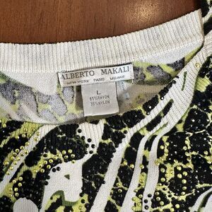 Awesome Alberto Makali top with sheer sleeves and embellishments on the front. Excellent condition!