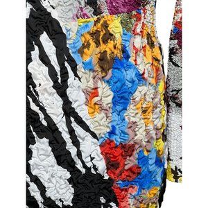 Alberto Malaki blouse size medium colorful long sleeve collar crinkle stretch ab