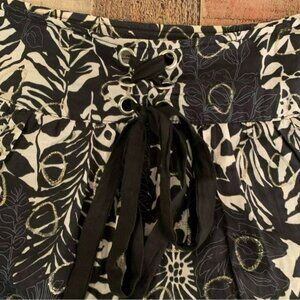 This Alberto Makali silk ruffle mini skirt boasts a bubble underlay in navy and silver, size 8. It adds a touch of elegance and flair to your wardrobe.