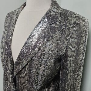 Alberto Mikali Sequin Blazer Jacket Animal Print Button Snap Closure Medium NWT