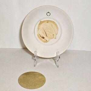 • Item is in excellent condition with no chips, cracks, or repairs. Detailed summary of the plate has come detached from the back due to age and glue deterioration. This piece can be reaffixed with hot glue or simple tape. The hair on the man kneeling has a very slight gray tint, hardy noticible in person. Original box included. Name & address of original owner has been redacted for privacy