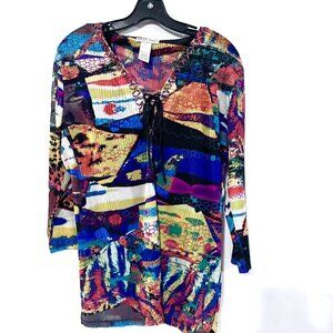 Alberto makali Set 2 Top Size Large Pop Art Colorful 3/4 sleeve Mesh See Thru