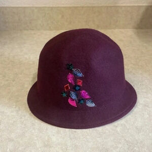 Albertus Swanepoll Burgandy 100% Wool Cloche Hat with Colorful stones