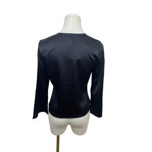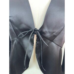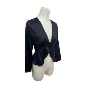 Albetine Black Satin Tie-Front Blouse Long Sleeve Size S - New