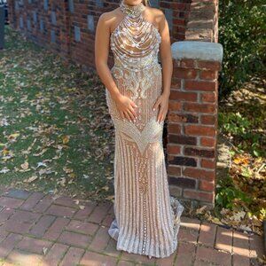 Evening / Wedding / Prom / Couture Gown made with jewels, pearls and stones. Custom Made. Couture Gown. Brand: Albin Dyla. Worn once. Condition: Like new. My height is 5'2 and I am 120 pounds. Sizes are xs-s and 0-2, so this will fit anyone with those sizes.