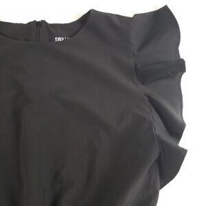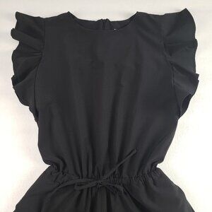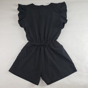 Albion 9 to 9 Romper Womens XS Black Shorts Cinch Waist Flutter Sleeve Jumpsuit