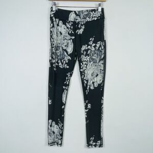 Albion Fit Grey Rose Floral Active Workout Pull On Leggings Pants Womens XS