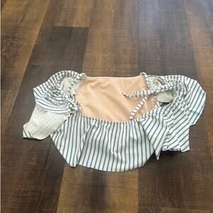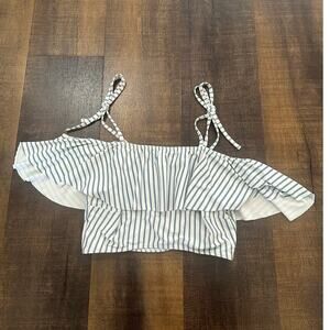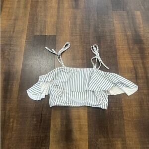 Albion Fit, Albion Kids, Swim Top, Swimsuit, Bikini Top, Ruffle Swim, Off Shoulder, Striped Swimwear, Blue White Swim, Summer Beachwear, Girls Swimwear