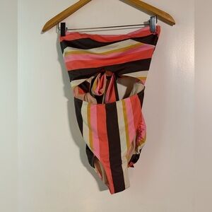 Albion swimsuit one piece features a striking geometric design in pink and brown, offering a modern and stylish look. Crafted for comfort and style