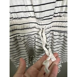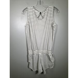 Albion Fit Tank Romper Women's M White Stripe Tie Waist Lightweight Athlesiure