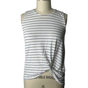 Albion Fit White and Blue Stripe Twist Knot Tank Top Size Small