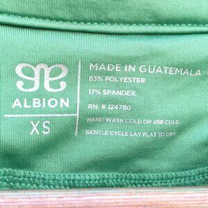 Albion women’s polo shirt in green, size XS. Lightweight, breathable, and stretchy performance fabric (83% polyester / 17% spandex). Perfect for golf, tennis, workouts, or casual wear. Features a two-button placket, embroidered chest logo, and fitted silhouette.