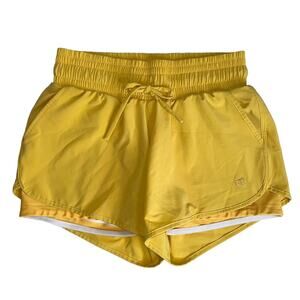 Albion Mustard Lunge Shorts High Waisted Stretch Running Workout Yellow Small