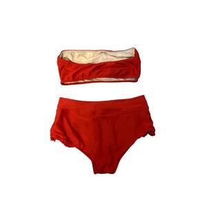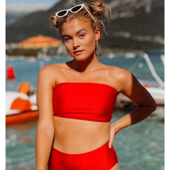Stylish Albion bikini in vibrant red. Strapless top with matching bottoms. Perfect for summer days.