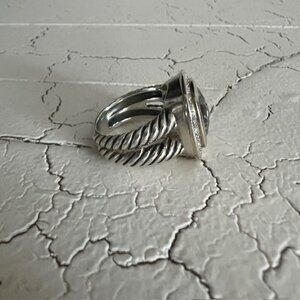 No Chips in the stone. Silver band has some scuffs or signs of wear.