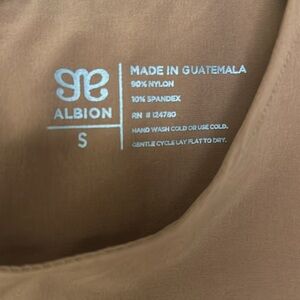Dress is in great used condition. This is preowned and has been worn. There are some deodorant marks near the arm pit. Overall beautiful condition. No stains. Lightly worn. This is a dark tan color. Women’s size small
