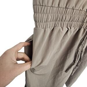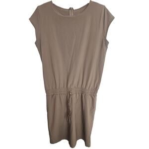 Albion Womens Going Places Tan Active Casual Work Dress Cinch Waist Sz M Pockets