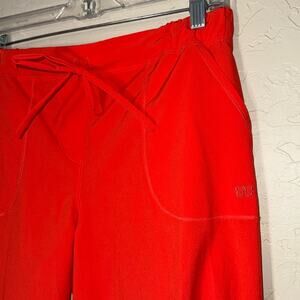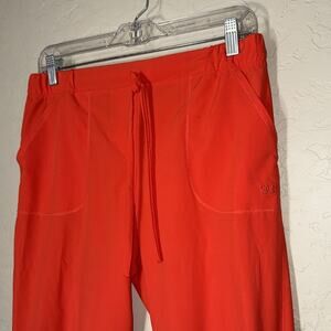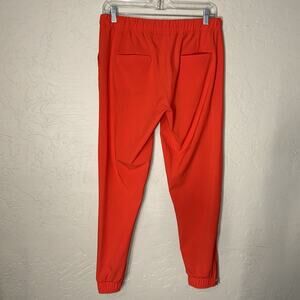 Albion fit jetsetter jogger style pant with ankle zipper. Drawstring waist. The color is an orange red. Size small.