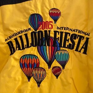 Warm, Water proof, Yellow & Black 2005 Albuquerque International Balloon Fiesta signature jacket. Limited edition. Long coat (mid thigh). Professionally dry cleaned. Unisex style. Size Men’s Medium/Women’s Large. Few Small stain spots on front, barely visible-see photo.