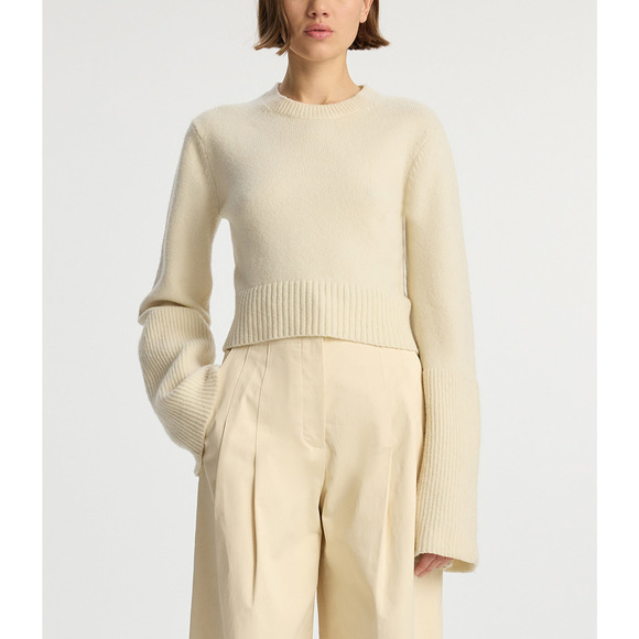 Alc Ltd 'Clover' White Wool Sweater Size S: crew neck, long sleeves, exaggerated cuffs, pulls on.