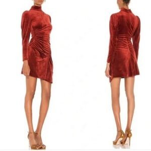 A.l.c. Marcel Ruched Velvet Mini Dress in Sumac Rust Burnt Orange 12