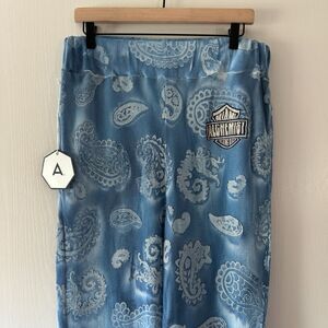 Alchemist Mens Blue Lando Lounge Straight Leg Waffle Knit Paisley Pants Size XL