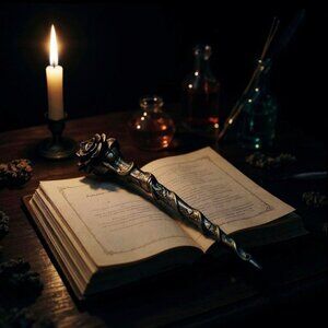 🌙 Style Tags: alchemy gothic wand ✦ black rose scepter ✦ ritual altar tool ✦ gothic décor ✦ cosplay prop ✦ resin wand ✦ nwot gothic ✦ witchcraft accessory