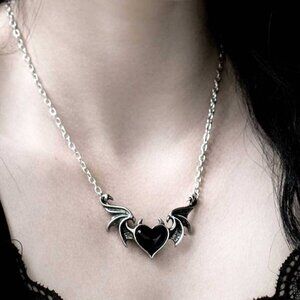 Alchemy Gothic Blacksoul Necklace Black Heart Bat Wing Pendant NWT