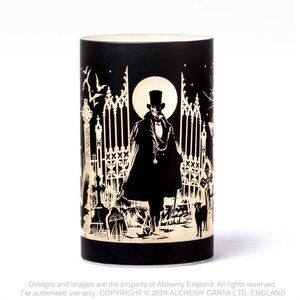 Alchemy Gothic Etched Black Glass LED Count Magistus Lantern Light NIB