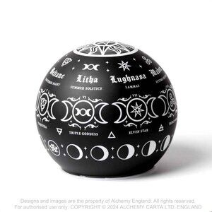 Alchemy Gothic Pagan Calendar LED Globe Light Black Glass Etched Symbols NIB