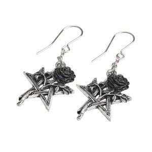 Alchemy Gothic Pentagram Black Rose Hook Earrings