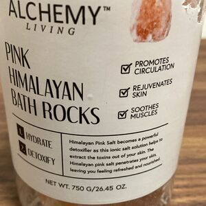 Alchemy Living NWOT Pink Himalayan bath rocks. Treat yourself to a luxuriously relaxing bath salt soak infused with sweet vanilla & rose that dissolves for a glam bath. Penetrates your skin leaving you feeling refreshed.